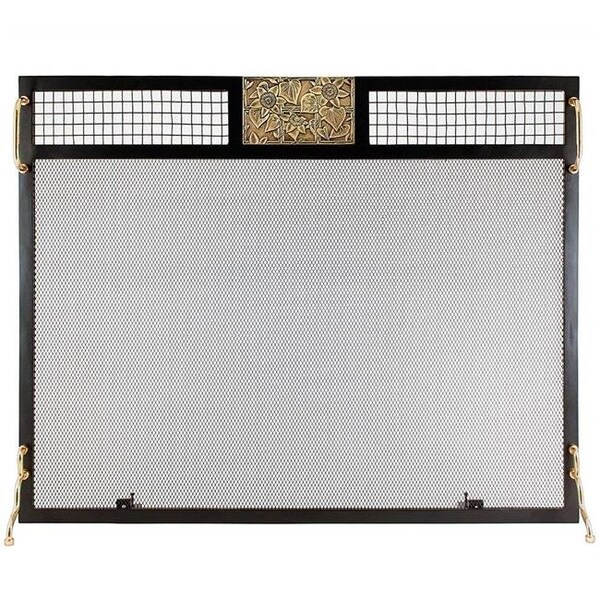 Minuteman SES-3830AC Clematis Emblem Fireplace Screen; Antique Brass (Discontinued)
