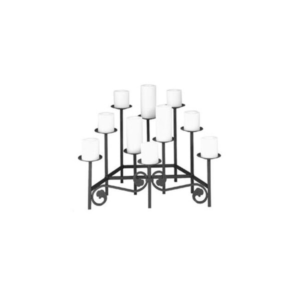 Enjoy the ambiance of your fireplace the whole year through. With ten 3" candle cups gracing its sturdy wrought iron frame. the Imperial candelabra will create a relaxing atmosphere in your fireplace no matter which season you're celebrating. Each cup features a spindled middle to secure candles in place. Heavy-duty wrought iron construction and a matte black powder-coated finish ensure durability and lasting beauty. For added relaxation. use with aromatherapy candles. Candles not included. Product Note: Please be sure to measure your fireplace before ordering to ensure the candelabra will fit.