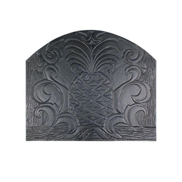 The fireback has been an indispensable part of the fireplace tradition in Europe since the 15th Century.The colonists carried both the pineapple as a symbol of hospitality and the fireback tradition to America and today you can add that touch of elegance and history to your own fireplace.Firebacks are designed to rest on the floor of the hearth but Fireback Supports or Feet may also be used to hold this fireback upright and raise it off the hearth if extra height is desired.All our firebacks are designed for use with both gas logs and wood burning fireplaces.Specifications.Country of Origin: China.Material: Cast Iron.Finish: Matte Black Painted.Assembly Required Y/N: No.Size: 24in W x 20in H.Weight: 38 lbs