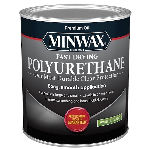 Minwax Fast-Drying Polyurethane, Net Content: 1 qt, Clear, Sheen: Ultra Flat, 125 sq-ft Coverage Area, Drying Time: 24 hr, Base Type: Oil, Application Method: Foam Brush, Lambswool Applicator, Natural Bristle Brush, Applicable Materials: Wood, Number of Coats: 2 to 3, Interior/Exterior: Interior