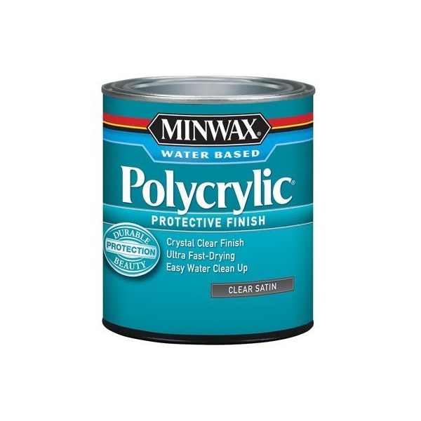 QT, Clear, Satin, Polycrylic Protective Finish, Hard Crystal Clear, Ultra Fast Drying Protective Finish, Has Very Little Odor Cleans Up With Water, Great Clarity Makes It Perfect For Use Over Light Woods Minwax Water Based Wood Stains