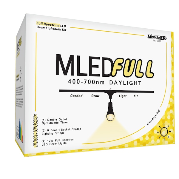 Grow your hungry plants exactly how you need to for every step of the growing cycle with the MLED Nanometer Indoor Garden Corded Grow Light Kits. Acting like an extension cord for your LED Bulbs, this corded kit is an easy solution for all your indoor home horticulture needs! Place anywhere and fasten to anything with ease, Miracle LED Grow Lights are a must have for any economical indoor gardener. Chemical-free indoor growing is perfect for many different environments, such as small kitchen herb gardens, apartments with limited sunlight, basement fruit/vegetable gardens, anywhere you want to grow! Comes with one bonus SproutMatic timer to manage your plant's lighting cycle: Set the time and push the tabs down to set how long your plants receive light. Images shown are for packaging and display purposes only. They are representative of the species or genus of plants that may be grown with artificial LED light. Results vary by many factors and artificial lights do not fully replace light from the sun.