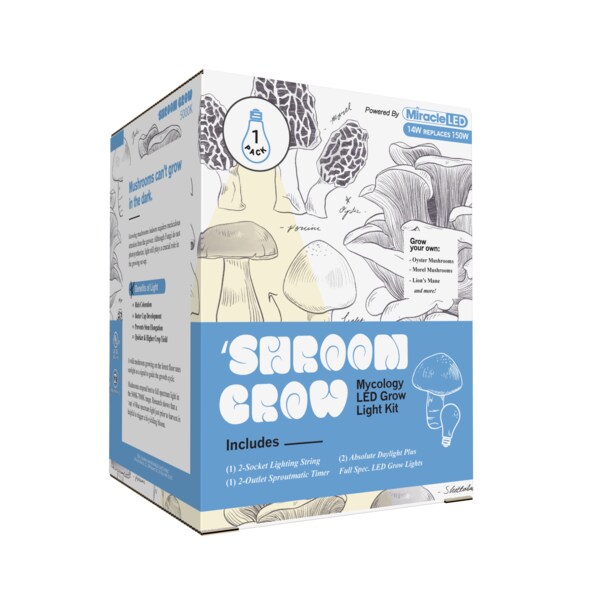 Sick of hunting for elusive Morel mushrooms? Live in an area mushrooms can't easily grow? Do it yourself for homegrown, delicious shrooms with the Miracle LED Shroom Grow LED Grow Light Kit! A wild mushroom growing on the forest floor uses sunlight as a signal to guide the growth cycle and now you can emulate this indoors with Miracle LED Grow Lights. For indoor mycology, Full Spectrum and Blue Spectrum grow lights have been shown to improve cap color/development and overall yield. For best results, use the included SproutMatic Timer to automate a 12 hr on / 12 hr off light schedule.