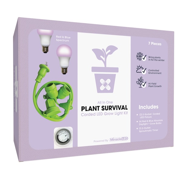 Save your sad, withering plants with the Miracle LED Plant Survival Indoor Garden Corded Grow Light Kits before it's too late! Bring your geraniums in for the winter or start growing your spring seeds indoors to save sun deprived plants during the winter months. Miracle LED grow bulbs mimic the natural daylight & spectrums of light plants need to survive. Place anywhere and fasten to anything with ease, Miracle LED Grow Lights are a must have for any economical indoor gardener. Chemical-free indoor growing is perfect for many different environments, such as small kitchen herb gardens, apartments with limited sunlight, basement fruit/vegetable gardens, anywhere you want to grow! Comes with one bonus SproutMatic timer to manage your plant's lighting cycle: Set the time and push the tabs down to set how long your plants receive light. Results vary by many factors and artificial lights do not fully replace light from the sun.