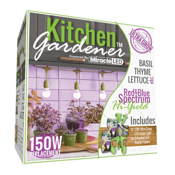 Grow your hungry plants exactly how you need to with the Miracle LED Kitchen Gardener Corded Grow Light Kit. Acting like an extension cord for your LED Bulbs, never again struggle with supplying your plants with enough light or sacrifice the layout of your home in order to move your plants closer to the light they need! Place anywhere and fasten to anything with ease. Chemical free indoor growing is perfect for small kitchen herb gardens along with apartments with limited sunlight, basement fruit/vegetable gardens, anywhere you want to grow! Images shown are for packaging and display purposes only. They are representative of the species or genus of plants that may be grown with artificial LED light. Results vary by many factors and artificial lights do not fully light from the sun.