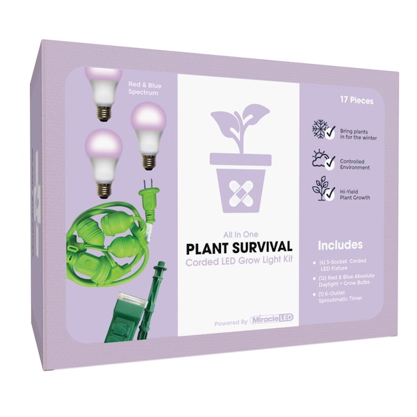 Save your sad, withering plants with the Miracle LED Plant Survival Indoor Garden Corded Grow Light Kits before it's too late! Bring your geraniums in for the winter or start growing your spring seeds indoors to save sun deprived plants during the winter months. Miracle LED grow bulbs mimic the natural daylight & spectrums of light plants need to survive. Place anywhere and fasten to anything with ease, Miracle LED Grow Lights are a must have for any economical indoor gardener. Chemical-free indoor growing is perfect for many different environments, such as small kitchen herb gardens, apartments with limited sunlight, basement fruit/vegetable gardens, anywhere you want to grow! Comes with one bonus SproutMatic timer to manage your plant's lighting cycle: Set the time and push the tabs down to set how long your plants receive light. Results vary by many factors and artificial lights do not fully replace light from the sun.