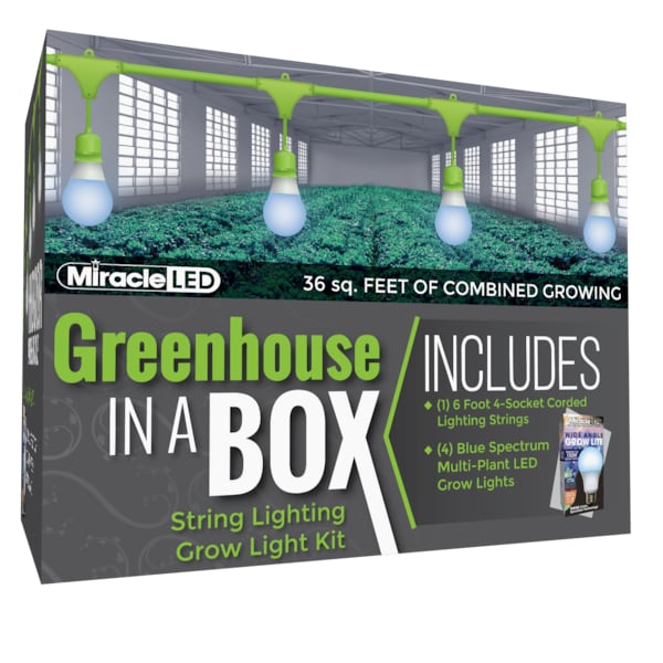 Grow your hungry plants exactly how you need to with the Miracle LED Greenhosue in a box Corded Grow Light Kit. Acting like an extension cord for your LED Bulbs, never again struggle with supplying your plants with enough light or sacrifice the layout of your home in order to move your plants closer to a window! Place anywhere and fasten to anything with ease, Miracle LED grow lights are a must-have for any economical indoor gardener. Chemical-free indoor growing is perfect for many different environments, such as small kitchen herb gardens, apartments with limited sunlight, basement fruit/vegetable gardens, anywhere you want to grow! Images shown are for packaging and display purposes only. They are representative of the species or genus of plants that may be grown with artificial LED light. Results vary by many factors and artificial lights do not fully replace light from the sun.