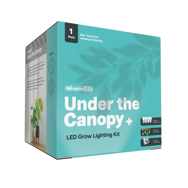 Grow your high-density plants with up to twice the productivity with the Miracle LED Under the Canopy Indoor Garden Corded Grow Light Kits. Acting like an extension cord for your LED Bulbs, this corded kit is an easy solution for your indoor home horticulture needs! Place anywhere and fasten to anything with ease, Miracle LED Grow Lights are a must have for any economical indoor gardener. Chemical-free indoor grow bulbs have a low heat signature & are built with Rough Service LED Technology making them perfect for growing in the messy, under canopy region. Comes with one bonus SproutMatic timer to manage your plant's lighting cycle: Set the time and push the tabs down to set how long your plants receive light. Images shown are for packaging and display purposes only. They are representative of the species or genus of plants that may be grown with artificial LED light. Results vary by many factors and artificial lights do not fully replace light from the sun.