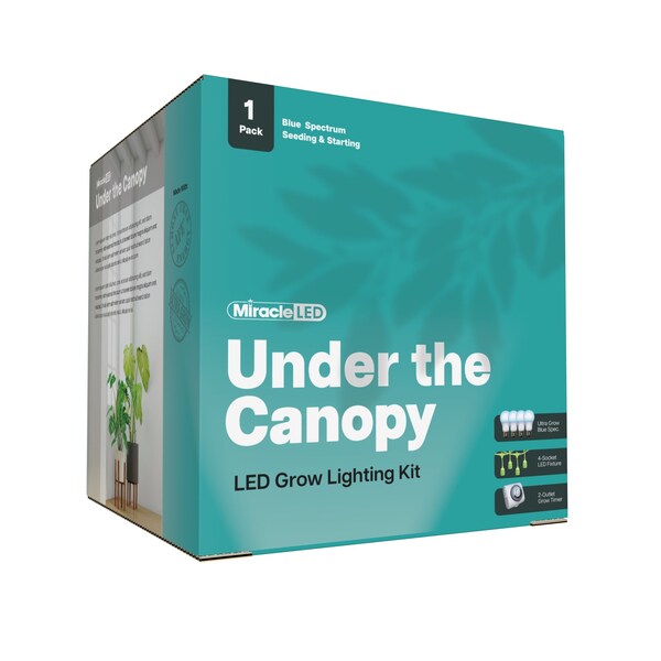 Grow your high-density plants with up to twice the productivity with the Miracle LED Under the Canopy Indoor Garden Corded Grow Light Kits. Acting like an extension cord for your LED Bulbs, this corded kit is an easy solution for your indoor home horticulture needs! Place anywhere and fasten to anything with ease, Miracle LED Grow Lights are a must have for any economical indoor gardener. Chemical-free indoor grow bulbs have a low heat signature & are built with Rough Service LED Technology making them perfect for growing in the messy, under canopy region. Comes with one bonus SproutMatic timer to manage your plant's lighting cycle: Set the time and push the tabs down to set how long your plants receive light. Images shown are for packaging and display purposes only. They are representative of the species or genus of plants that may be grown with artificial LED light. Results vary by many factors and artificial lights do not fully replace light from the sun.