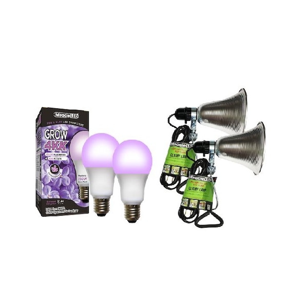 Our easy-clamp system allows light placement wherever necessary while our rubber textured no-slip design allows for secure placement. The 4KK bulbs are designed to replicate the light spectrums found in Professional Grow Farm equipment. 4KK Bulbs are Warmer in appearance and have added benefits for Plants in the latter stages of the life cycle. Indoor grow bulbs have a low heat signature & are built with Rough Service LED Technology making them perfect for all your growing needs. Images shown are for packaging and display purposes only. They are representative of the species or genus of plants that may be grown with artificial LED light. Results vary by many factors and artificial lights do not fully replace light from the sun.