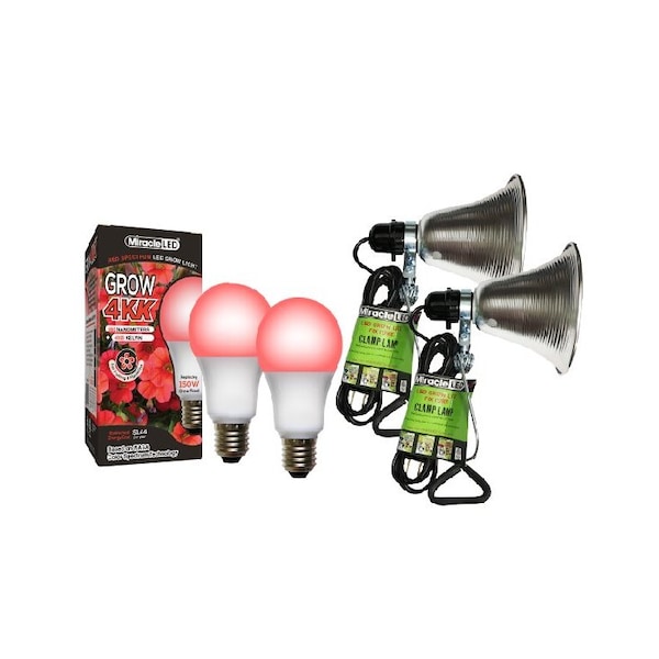 4KK Clamp-On LED Grow Light Kit, 12W Red Spectrum Daylight White Replacing 150W, 2PK