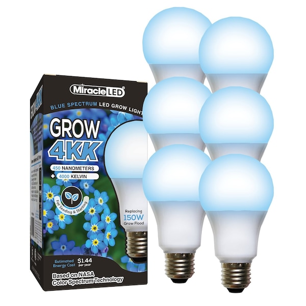 4KK Pro-Pack Indoor Grow Light Bulb, 4000K Blue Spec. Replace 150W Grow Bulbs, 6PK
