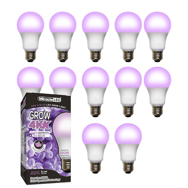 Want to use the technology used in commercial indoor gardening without the bulk or the high bill? Look no further! Our Miracle LED 4KK Grow bulbs are specially tuned to match spectrums found on bulky, energy sucking grow panels in a smaller, home-friendly form factor. These bulbs are specially tuned to 4000K full spectrum lighting to mimic natural daylight for the best plant growing results. Added Red & Blue Spectrum LED diodes help plants produce the highest yield by increased photosynthesis and nuturing denser leaves. With a versatile standard shape, 4kk Grow Lights are a must have for any economical indoor gardener. Chemical-free indoor grow bulbs have a low heat signature & are built with Rough Service LED Technology making them perfect for all your growing needs. Results vary by many factors and artificial lights do not fully replace light from the sun. Plants or Seeds not included. Fixtures not included. Bulb only.