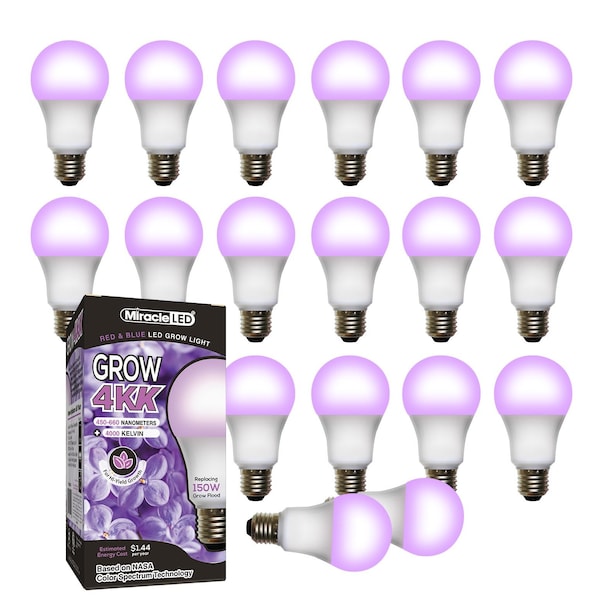 4KK Pro-Pack Indoor Grow Light Bulb, 4000K Red/Blue Spec. Replace 150W Grow Bulbs, 18PK