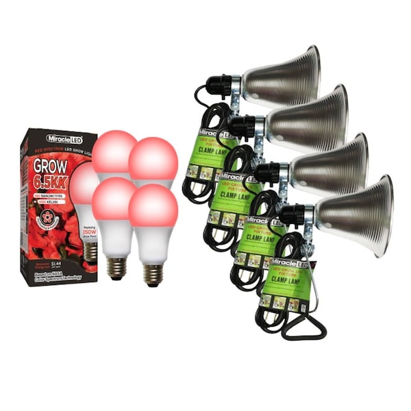 6.5KK Clamp-On LED Grow Light Kit, 12W Red Spectrum Daylight White Replacing 150W, 4PK