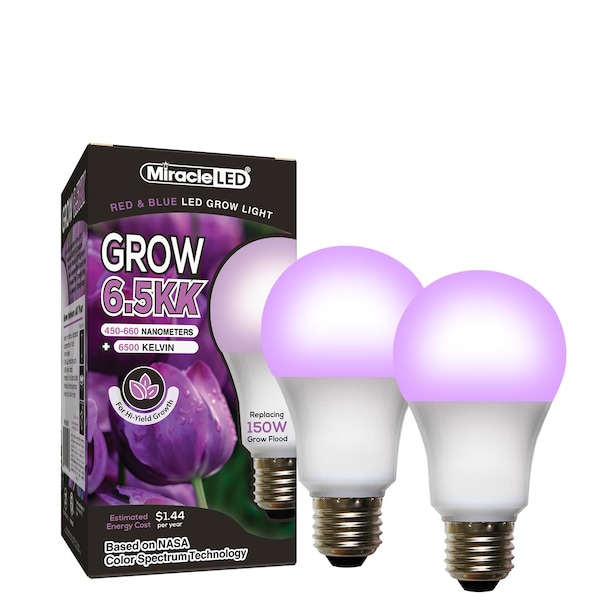 Want to use the technology used in commercial indoor gardening without the bulk or the high bill? Look no further! Our Miracle LED 6.5KK Grow bulbs are specially tuned to match spectrums found on bulky, energy sucking grow panels in a smaller, home-friendly form factor. These bulbs are specially tuned to 6500K full spectrum lighting to mimic natural daylight for the best plant growing results. Added Red & Blue Spectrum LED diodes help plants produce the highest yield by increased photosynthesis and nuturing denser leaves. With a versatile standard shape, 6.5KK Grow Lights are a must have for any economical indoor gardener. Chemical-free indoor grow bulbs have a low heat signature & are built with Rough Service LED Technology making them perfect for all your growing needs. Results vary by many factors and artificial lights do not fully replace light from the sun. Plants or Seeds not included. Fixtures not included. Bulb only.