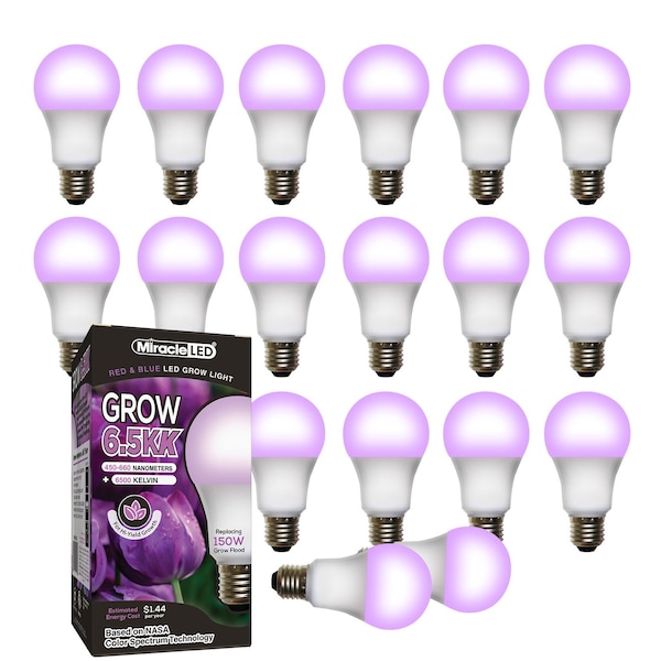 6.5KK Pro-Pack Indoor Grow Light Bulb, 6500K Red & Blue Spec. Replace 150W Grow Bulbs, 18PK