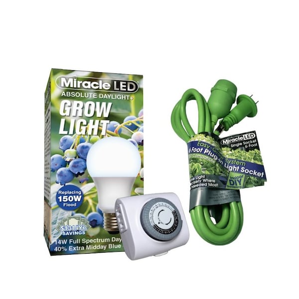 This Absolute Daylight Plus Light Fixture is perfect for your indoor gardening needs! Designed to be flexible, strong, and water resistant, these sockets cords are long lasting and durable. You have a limitless opportunity for setup with their versatile rubber design. Perfect for spaces with limited natural sunlight. Acting like an extension cord for your LED Bulbs, never again struggle with supplying your plants with enough light or sacrifice the layout of your home in order to move your plants closer to the light they need! Plus, this light bulb comes with a SproutMatic timer to manage your plant's lighting cycle: Set the time and push the tabs down to set how long your plants receive light. Images shown are for packaging and display purposes only. They are representative of the species or genus of plants that may be grown with artificial LED Light. Results vary by many factors and artificial lights do not fully replace light from the sun.