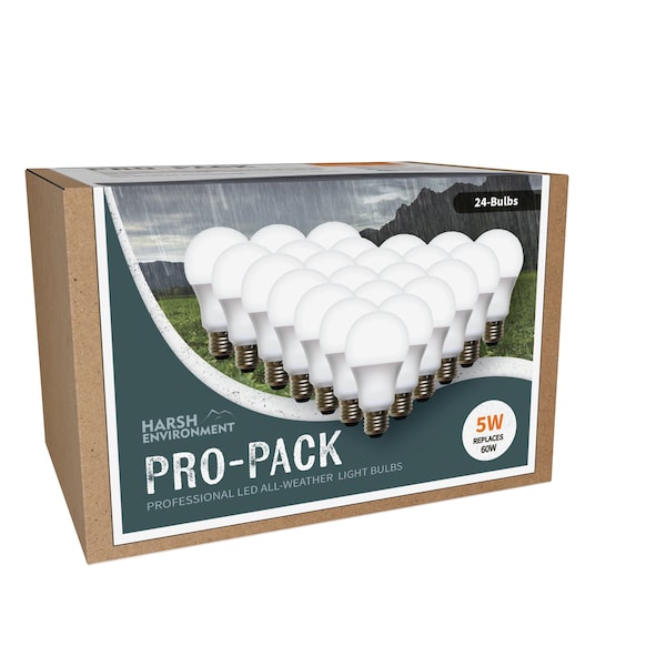 LED Harsh Environment Pro-Pack 5W Replaces 60W, Shatter Resistant All Weather Lightbulb, 24PK