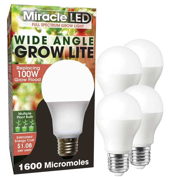 LED Grow Bulb, Bulb Beam Angle 270 Degrees , Bulb Shape A19, Light Technology LED, Incandescent Wattage Equivalency 100 W, Plant Growth Application Budding, Flowering, Seed Starting, Root Development, Vegetative Growth, Spectrum Full/Broad, Shatter-Resistant Yes, Bulb Housing Plastic, Peak Wavelength 700 nm, Bulb Manufacturers Warranty Length 1 yr, For Enclosed Fixtures Yes, Bulb Finish Frosted, Bulb Minimum Starting Temperature -4 Degrees F, Bulb Power Source Plug and Play