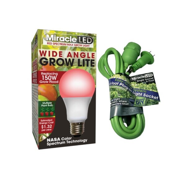 This multi-plant wide angle bulb kit is perfect for your indoor gardening needs! Designed to be flexible, strong, and water resistant, these sockets cords are long lasting and durable. You have a limitless opportunity for setup with their versatile rubber design. Perfect for spaces with limited natural sunlight. Acting like an extension cord for your LED Bulbs, never again struggle with supplying your plants with enough light or sacrifice the layout of your home in order to move your plants closer to the light they need! This corded fixture is compatible with A19 base grow bulbs. This wide-angle bulb covers multiple plants at once giving your plants the exactly the light they need and saving you money! Images shown are for packaging and display purposes only. They are representative of the species or genus of plants that may be grown with artificial LED Light. Results vary by many factors and artificial lights do not fully replace light from the sun.