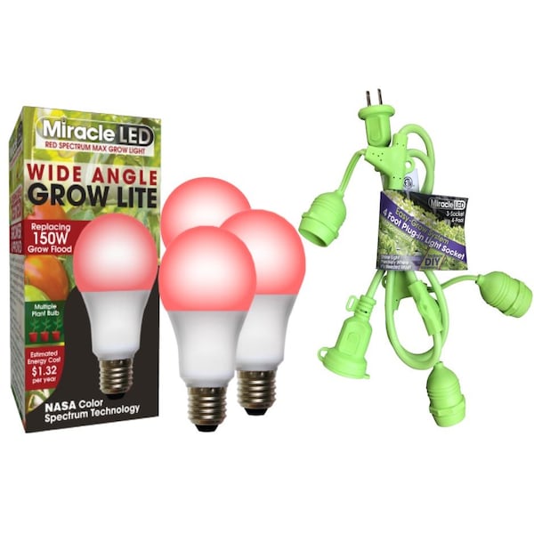 This multi-plant wide angle bulb kit is perfect for your indoor gardening needs! Designed to be flexible, strong, and water resistant, these sockets cords are long lasting and durable. You have a limitless opportunity for setup with their versatile rubber design. Perfect for spaces with limited natural sunlight. Acting like an extension cord for your LED Bulbs, never again struggle with supplying your plants with enough light or sacrifice the layout of your home in order to move your plants closer to the light they need! This corded fixture is compatible with A19 base grow bulbs. This wide-angle bulb covers multiple plants at once giving your plants the exactly the light they need and saving you money! Images shown are for packaging and display purposes only. They are representative of the species or genus of plants that may be grown with artificial LED Light. Results vary by many factors and artificial lights do not fully replace light from the sun.