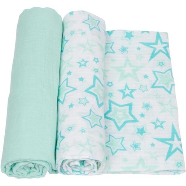 MiracleWare 4049 Aqua Stars Muslin Swaddle; 2 Pack (Discontinued)