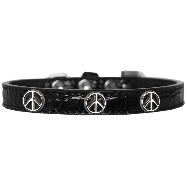 Peace Sign Widget Croc Dog Collar BlackSize 10 (Discontinued)