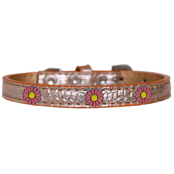 Pink Daisy Widget Croc Dog Collar CopperSize 18 (Discontinued)