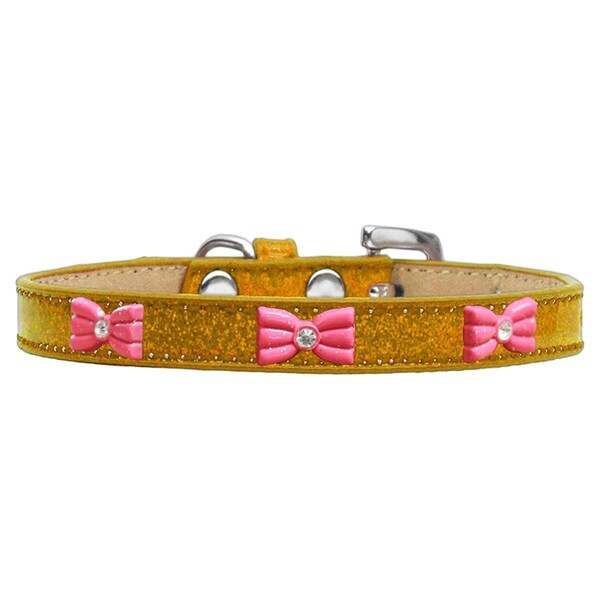 Pink Glitter Bow Widget Ice Cream Dog CollarGold Size 12 (Discontinued)