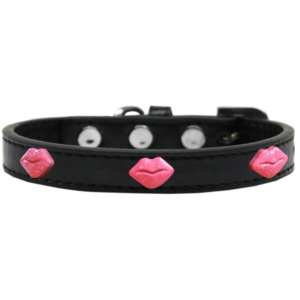 Pink Glitter Lips Widget Dog CollarBlack Size 16 (Discontinued)