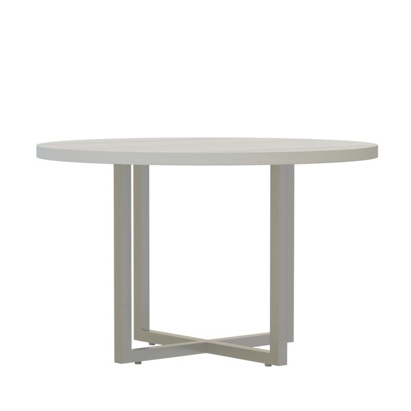 Conference Table, Bench Color White Ash, Edge Color Silver, Edge Material Steel, Frame Color Silver, Frame Finish Powder Coated, Frame Material Steel, Maximum Number of Seats 5, Number of Supports 4, Overall Diameter 42 in, Overall Height 29 1/2 in, Overall Length Not Applicable, Overall Width Not Applicable, Standards Not Applicable, Support Style Traditional Leg, Tabletop Color White Ash, Tabletop Finish Powder Coated, Tabletop Material Fiberboard, Tabletop Shape Circle