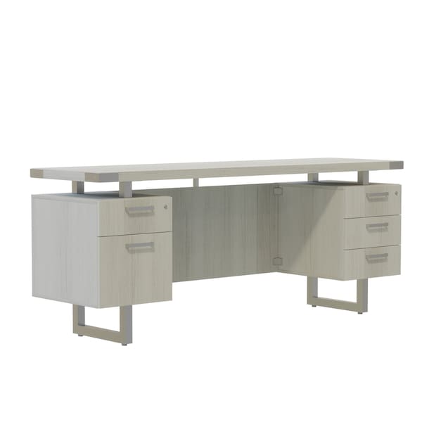 Credenza, Caster/Glide Diameter Not Applicable, Caster/Glide Type Not Applicable, Desktop Color White Ash, Desktop Material Fiber Board, Frame Color Silver, Frame Material Steel, Includes Client Surface Yes, Includes Keyboard Tray No, Includes Modesty Panel Yes, Number of Cable Holes 0, Number of Casters/Glides 4, Number of Drawers 5, Number of Pedestals 2, Number of Shelves 0, Overall Depth 20 in, Overall Height 29 1/2 in, Overall Width 72 in, Pedestal Location Left Main, Right Main