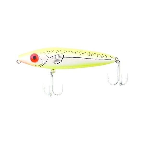 L S Bait Company is pleased to present our growing family of lures for the dedicated big game angler Iland Lures have earned a worldwide reputation as the finest, most productive artificial lures made today Striking brilliance and incredible realism are the keys to their success Their brilliance provides the widest possible detection range and a strikeprovoking realism that attracts all species of gamefish Several unique features, common to all Iland Lures combine to provide outstanding performance Mirrolure 83MRCHPR She Dog Rattling Surface Walker, 4, 34 oz Chartreuse Back BellyOrange ThroatPearl Sides, Floating