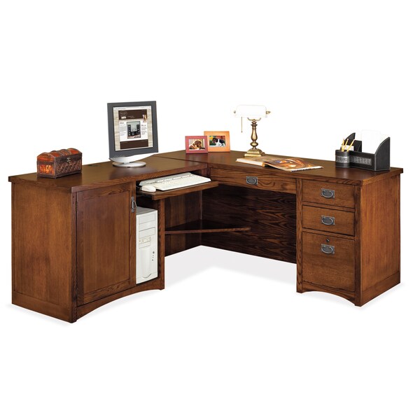 The simple and sophisticated designs offered by the Mission Pasadena collection take inspiration from 19th century antique furniture and create pieces that fit in any modern home or office. The Mission Pasadena desk features one letter file drawer that can be locked to keep important documents.