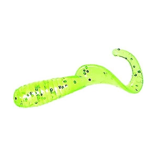 Lil' Bit Curly Tail Grub, 1 ChartreuseSliver Flake, 20PK (Discontinued)