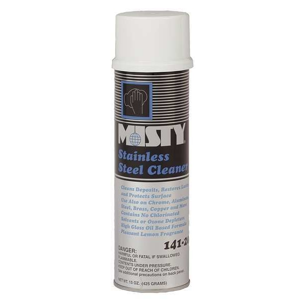 Cleaner, Cleaner Form Liquid, Container Size 15 oz, Container Type Aerosol Spray Can, NSF Rating C1, Properties No Rinse Required, Ready to Use, Standards NSF Rated, USDA, Surfaces for Use On Aluminum, Brass, Copper, Steel, Stainless Steel, Zinc, Fragrance Lemon, Net Weight 15 oz., Recommended Dilution Ready to Use, VOC Content 15 Percent, Package Quantity 12