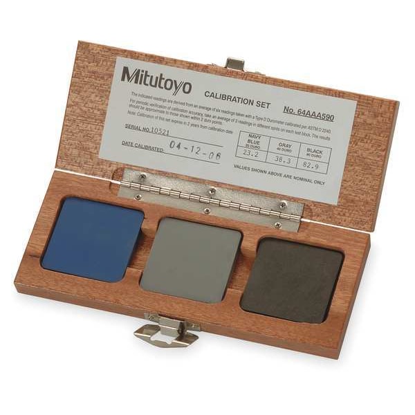 Shore D Calibration Block Set, For Materials Carbide, Non-Ferrous Metal, Plastic, Steel, For Use With 1ARV4, 1ARV5, 1ZRT5, 1ZRT6, Hardness Scale Shore D, Included Hardness Shore D 20, 40, and 80, Includes Test Block: 20, 40, 80, Includes Case Yes, Number of Pieces 3, Size 2 in x 2 in x 1/4 in