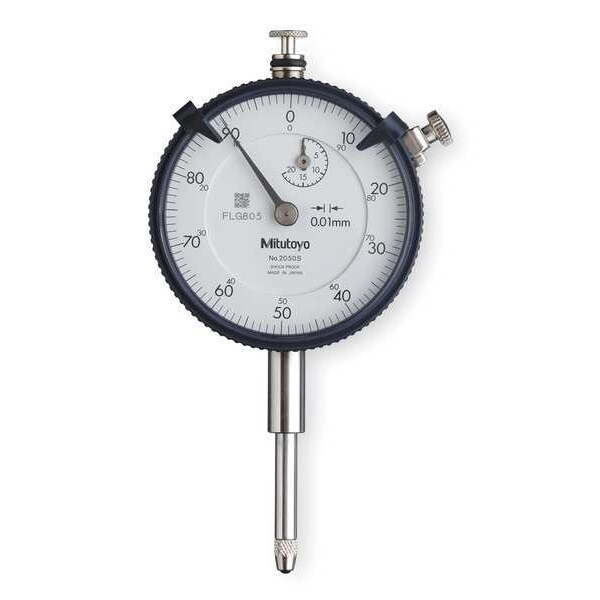 Dial Indicator - Flat Back, Range 0 mm to 20 mm, Graduations 0.01 mm, Accuracy +/-0.02 mm, Long Form Calibration Certificate No, Back Type Flat Back, Dial Color White, Dial Reading 0-100, Dial Size 57.00 mm, Dimension Type Metric, Included Certification Certificate of Inspection, Maximum Measurement - mm 20 mm, Minimum Measurement - mm 0 mm, Number of Indicators 1, Range per Revolution 1 mm, Reading Continuous, Bearing Type Plain, Bezel Lock Yes, Contact Point Dia. 1/4 in