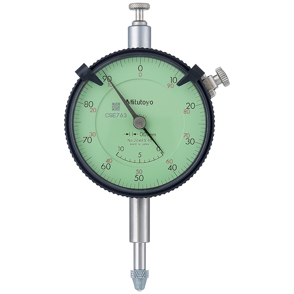 0.01mm, 10mm/(1mm per rev) Dial Indicator, 0-100, Flat Back, 8mm stem, Series 2, Jeweled, Adjustable Hand