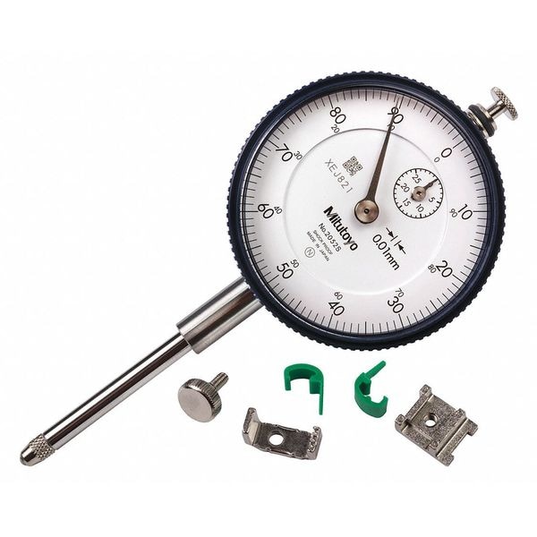 Dial Indicator, Range 0 to 30 mm, Graduations 0.01 mm, Accuracy +/-0.025 mm, Long Form Calibration Certificate No, AGD Number AGD 2, Back Type Lug, Dial Color White, Dial Reading 0-100, Dial Size 57 mm, Dimension Type Metric, Included Certification Certificate of Inspection, Maximum Measurement - mm 20 mm, Minimum Measurement - mm 0 mm, Number of Indicators 1, Operation Type Plunger, Range per Revolution 1 mm, Reading Continuous, Bearing Type Plain, Bezel Lock No, Case Type Case