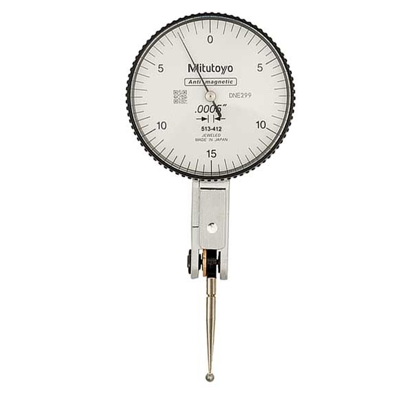 Item Horizontal Dial Test Indicator, Range 0 in to 0.03 in, Graduations 0.01 mm, Long Form Calibration Certificate No, Contact Point Dia. 0.078125 in, Dial Color White, Dial Reading 0-15-0, Dial Size 40 mm, Dimension Type Inch, Included Certification Short Form Certificate of Inspection with NIST Traceability, Includes Dovetail Mount Attachments No, Maximum Measurement - Inch 0.03 in, Minimum Measurement - Inch 0 in, Number of Indicators 1, Operation Type Lever-Style