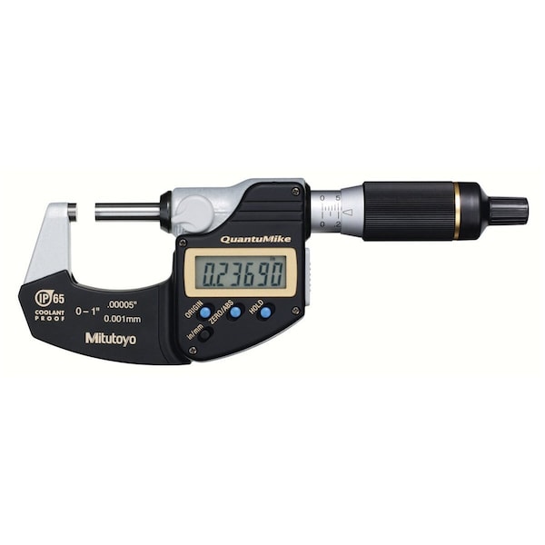 3-4 In/76.2-101.6mm, .00005 In/0.001mm IP65 QuantuMike Digimatic Outside Micrometer, With SPC Data Output, Ratchet Thimble, With Standard