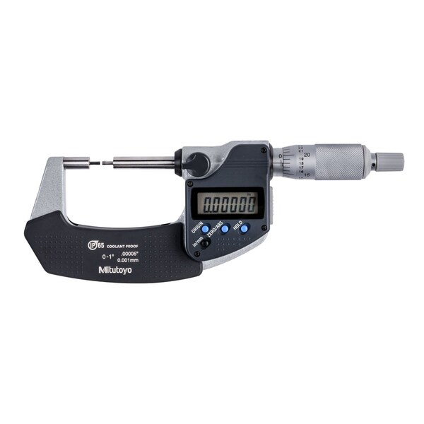 0-1 In/0-25.4mm, .00005 In/0.001mm Digimatic Spline Micrometer, 2mm Diameter Spline, Carbide Steel Tip, With SPC Data Output, Ratchet Stop
