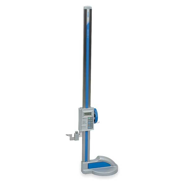 Item Digital Height Gauge, Counter Type Electronic Digital, Mechanism Feed Wheel, Construction Steel, Display LCD, Resolution 0.0005 in/0.01 mm, Range 0 in to 24 in/0 to 600 mm, Accuracy +/-0.002 in, Base Cast Iron, Screw Clamp Lever Locks Scriber at any Position, Battery (1) SR44 Battery, Features Large Smooth Slider Feed Wheel, Includes Carbide Tipped Scriber
