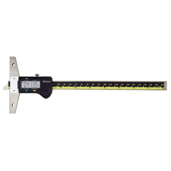 Digital Depth Gage, Electronic, Absolute, IP67, Range (In./mm) 0 to 8 In./0 to 200mm, Resolutions (In./mm) 0.0005/0,01, - Thimble, - Anvil, - Spindle, Base Length 4 In., Number of Measuring Rods -, Number of Gauges -, Rod Type -, SPC Output Yes, LCD Display, Lock Nut Type -, Hardened Stainless Steel, Meets/Exceeds -, Includes Fitted Case, Battery