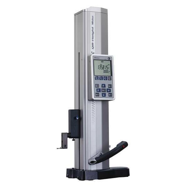 Item Digital Height Gauge, Counter Type Electronic Digital, Mechanism Roller Bearing, Construction Aluminum, Steel, Display LCD, Resolution 0.00005 in/0.001 mm, 0.0001 in/0.005 mm, Range 0 in to 14 in/0 to 350 mm, Accuracy +/-(2.4+2.1L/600) micron, Base Cast Iron, Battery (4) AA LR6 Batteries, (4) AA Nickel Metal Hydride Rechargeable Batteries, Features High Accuracy and High Resolution Absolute Linear Encoder for Position Detection, Pneumatic Floating System