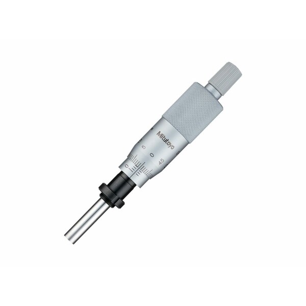 Micrometer Head, common type middle size. 0-1 inch range, .0001 inch accuracy, .375 stem diameter, clamp nut stem spindle lock, flat (carbide tip) spindle face, ratchet stop
