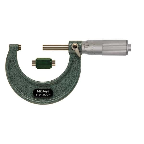 Mechanical Outside Micrometer, Range 1 in to 2 in, Resolution 0.0001 in, Accuracy +/- 0.001 in, Long Form Calibration Certificate No, Dimension Type Inch, Included Certification Certificate of Inspection, Jaw Depth Not Applicable, Mechanical Display Type Vernier, Operation Type Mechanical, Resolution - Counter Not Applicable, Thimble Type Friction, Ratchet, Anvil Material Carbide Tipped, Anvil Shape Flat, Case Included Yes, Case Type Plastic Case, Frame Material Iron
