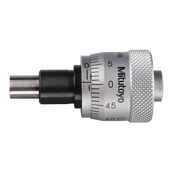 Mechanical Micrometer Head, Range 0 mm to 6.5 mm, Resolution 0.01 mm, Accuracy 0.002 mm, Dimension Type Metric, Mouting Hub Diameter 3/8 in, Operation Type Mechanical, Rotating Spindle (Yes/No) Yes, Spindle Shape Spherical, Thimble Type Plain, Includes Spanner, Lock Nut Type Spindle Lock, Long Form Calibration Certificate No, Maximum Measurement - mm 6.5 mm, Minimum Measurement - mm 0 mm, Scale Finish Chrome, Spindle Diameter 6.35 mm, Spindle Material Steel, Standards JIS B 7502